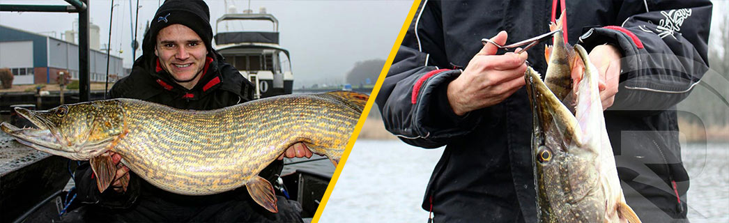 Grote snoek onthaak je niet met handen! De dreggen kunnen regelmatig diep in de bek van de snoek verdwijnen. Met de vlijmscherpe naar binnen staande tanden is het niet verstandig om de dreg met je hand los te willen maken. Gebruik daarom altijd een lange onthaaktang om de dreg los te halen.