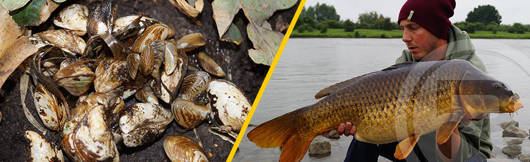 Bij lichte bodems ga ik vaak op zoek naar mosselbanken, grindplaten of gebroken puin. Zeker bij grotere zandafgravingen zie je vaak dat de kantzones verstevigd zijn met gebroken puin. Deze plekken zijn ideaal voor kreeftjes en mossels om zich tussen op te houden, dit weet de karper natuurlijk ook! Mosselbanken en grindplaten zijn vaak nauw met elkaar verbonden. Mossels kunnen zich goed vastzetten aan de stenen en vormen hierdoor automatisch een ideale voedselplek voor karper.