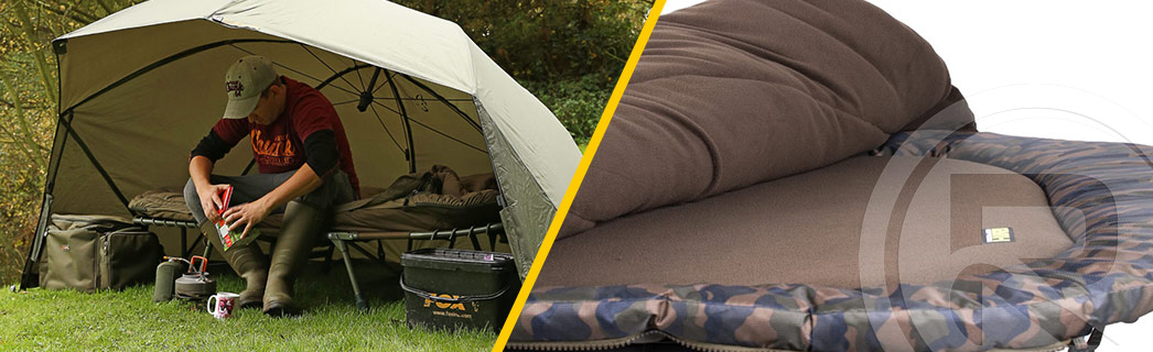 Steeds vaker zie je dat merken, onder andere Fox, JRC, Solar en Faith met een compleet zogenaamd sleeping system komen. De term 'system' betekent bij een stretcher dat het een slaapzak en stretcher/veldbed in één is. Doordat de slaapzak direct op het bed vast gemaakt zit en een deel van de slaapzak over de rits heen valt heeft kou minder kans. Losse slaapzakken worden al langer uitgevoerd met heavy-duty ritsen die snel open geritst kunnen worden. Doordat op een sleeping system één zijde van de rits vastzit gaat de rits sneller open waardoor je nog sneller je slaapzak uit kan. Tevens is het geheel in één keer mee te nemen, ideaal als je alle spullen op de trolley of in de auto moet vervoeren.
